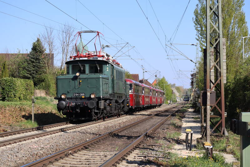 E94 088 der Elektrischen Zugförderung Württemberg zieht den Zug Motorschaden-bedingt.